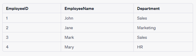 예를 들어, 다음과 같은 Employees 테이블이 있다고 가정해봅시다.