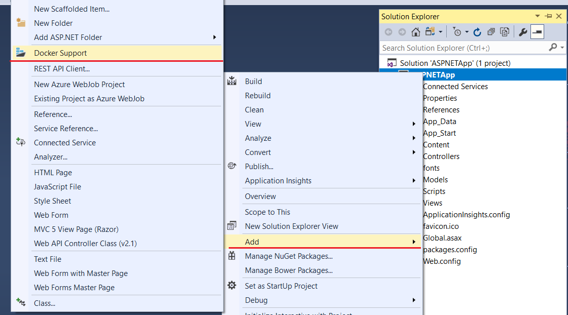 이 기능을 활성화하면Docker for Windows를 다운로드하여 설치해야합니다.Docker를 설치하면 Visual Studio에서 새 ASP.NET MVC 프로젝트를 만들 수 있습니다.프로젝트를 만든 후에Dockerfile는 프로젝트 응용 프로그램 루트에이름을가진 새 파일을 만들 수 있습니다.Dockerfile을 만든 후에는 다음 줄을 추가해야합니다.