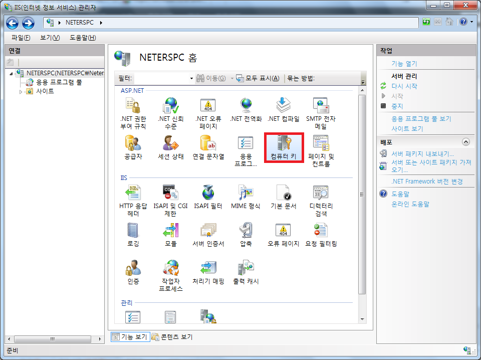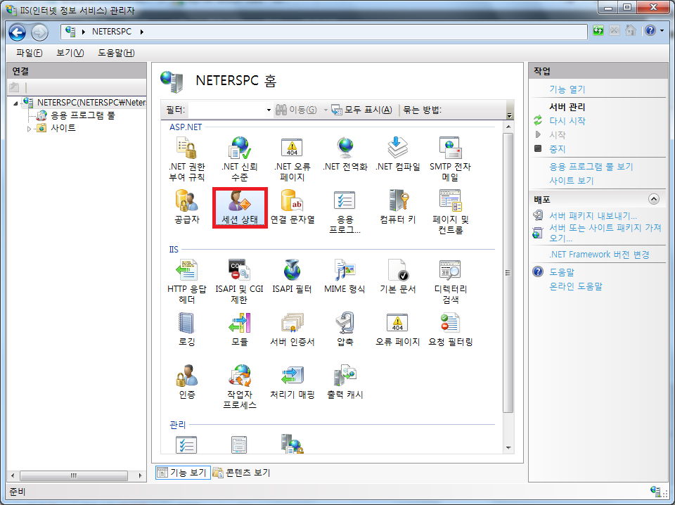 IIS 7에서 볼 수 있는 아래 그림과 같은 설정도 이 XML 파일의 수정을 텍스트 에디터 없이 수정하는 것입니다.