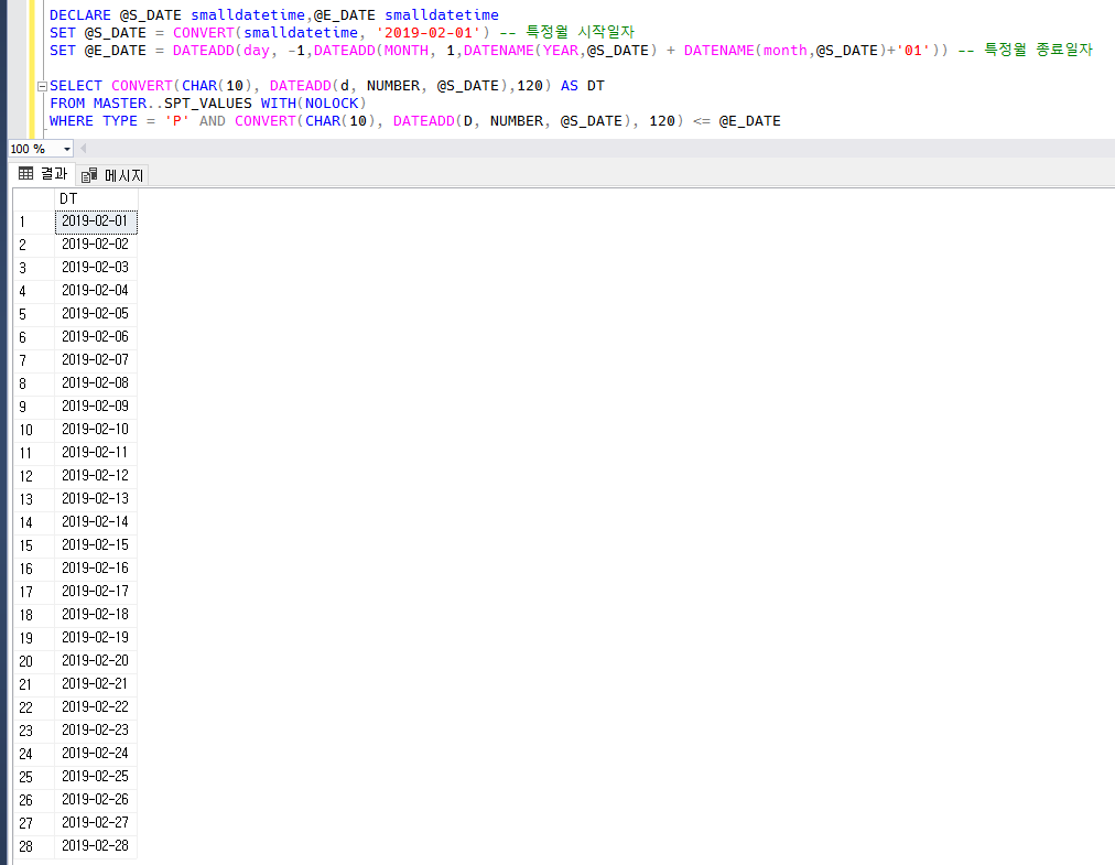 WHERE @startDate + Number <= @endDate AND type = 'P'