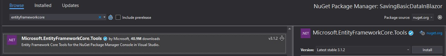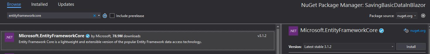 설치하는 동안에 추가적으로 설치해야 할 4 개의 package 가 있습니다. 솔루션 탐색기에서 프로젝트를 마우스 오른쪽 단추로 클릭하고 "NuGet 패키지 관리…"를 클릭하고 다음을 검색하십시오.