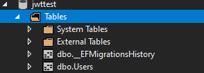 테이블이 올바르게 생성 되었는지 확인하려면 보기 메뉴 에서 SQL Server 오브젝트 탐색기 를 열고, 로컬 데이터베이스를 열고 테이블을 확인해 보세요. 클래스명과 동일하게 Users 라는 테이블과 id 가 1 과 2 라는 2개의 row 가 추가되어 있는것을 확인 해 보세요.