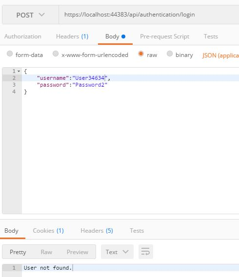 endpoint 는 POST 메소드를 통해 액세스되며 request 의 body 을 통해 "User" 오브젝트를 받게 됩니다. 먼저, 사용자 이름이 데이터베이스에 존재하는지 여부를 확인하고 그렇지 않은 경우 "Not Found"응답을 반환합니다. 그런 다음 데이터베이스와 비밀번호를 확인합니다.