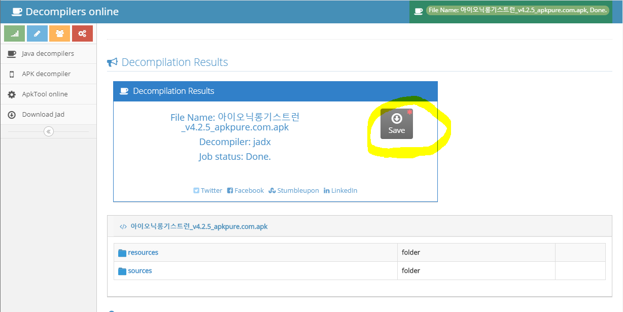 변환한 JAR 를 소스로 ZIP 다운로드도 가능합니다. 받은 ZIP 을 압축 풀어서 소스를 보시면 되겠습니다.