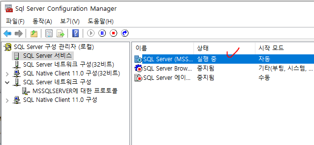 sql server 서비스에서 sql server (mssqlserver) 를 재시작합니다.