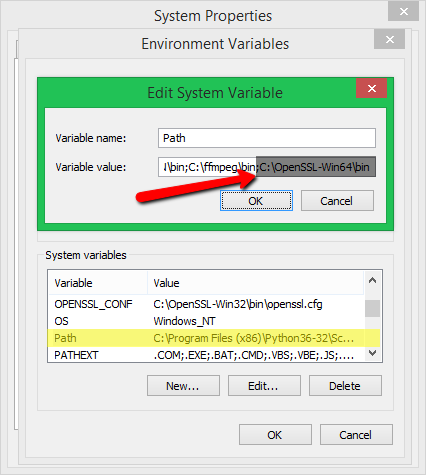 set Path=......Other Values here......;C:\OpenSSL-Win32\bin