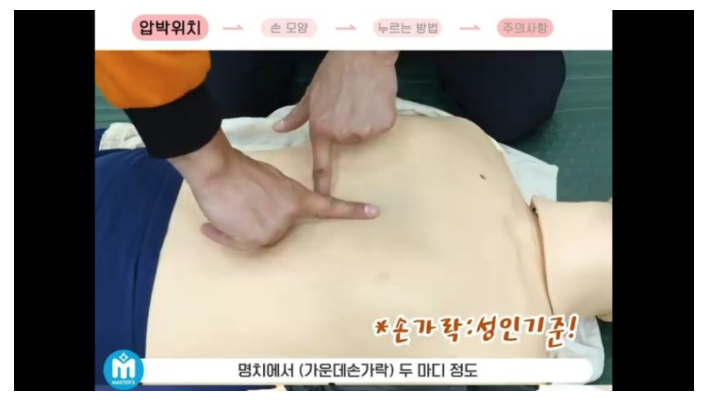 압박 위치는 명치에서 손가락 두마디 위가 적당하다고 합니다.