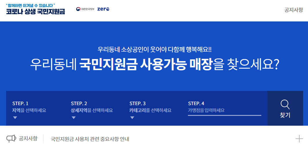 국민지원금 사용처 안내 - 메인