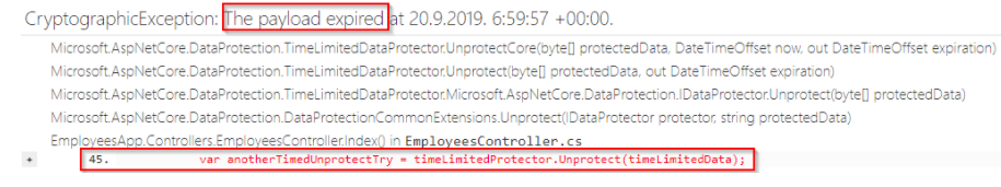 var timedUnprotectedData = timeLimitedProtector.Unprotect(timeLimitedData);