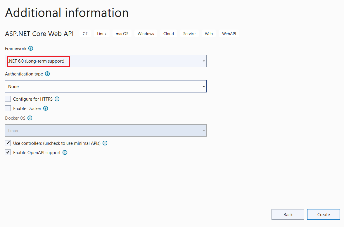 프로젝트에 유효한 이름을 지정하고 .NET 6.0 프레임워크를 선택할 수 있습니다.