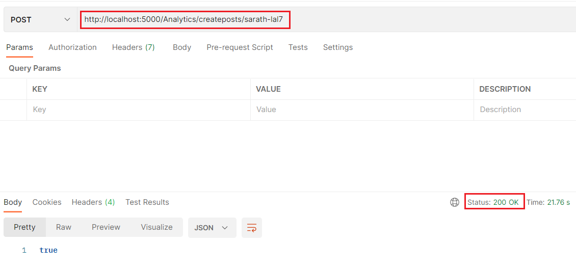 애플리케이션을 실행하고 Postman 도구를 사용하여 C# Corner 게시물 데이터를 몇 개 생성하고 데이터베이스에 저장할 수 있습니다.
