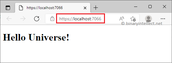 We used the WelcomeMessage component and specify the Message to be Hello Universe!. Notice that we have also used @page directive to specify a route /IndexBlazor. This way the Index component can be accessed at /IndexBlazor. We already have Index.cshtml file in the Pages folder. Therefore, we can't assign /Index route to the newly added razor component.