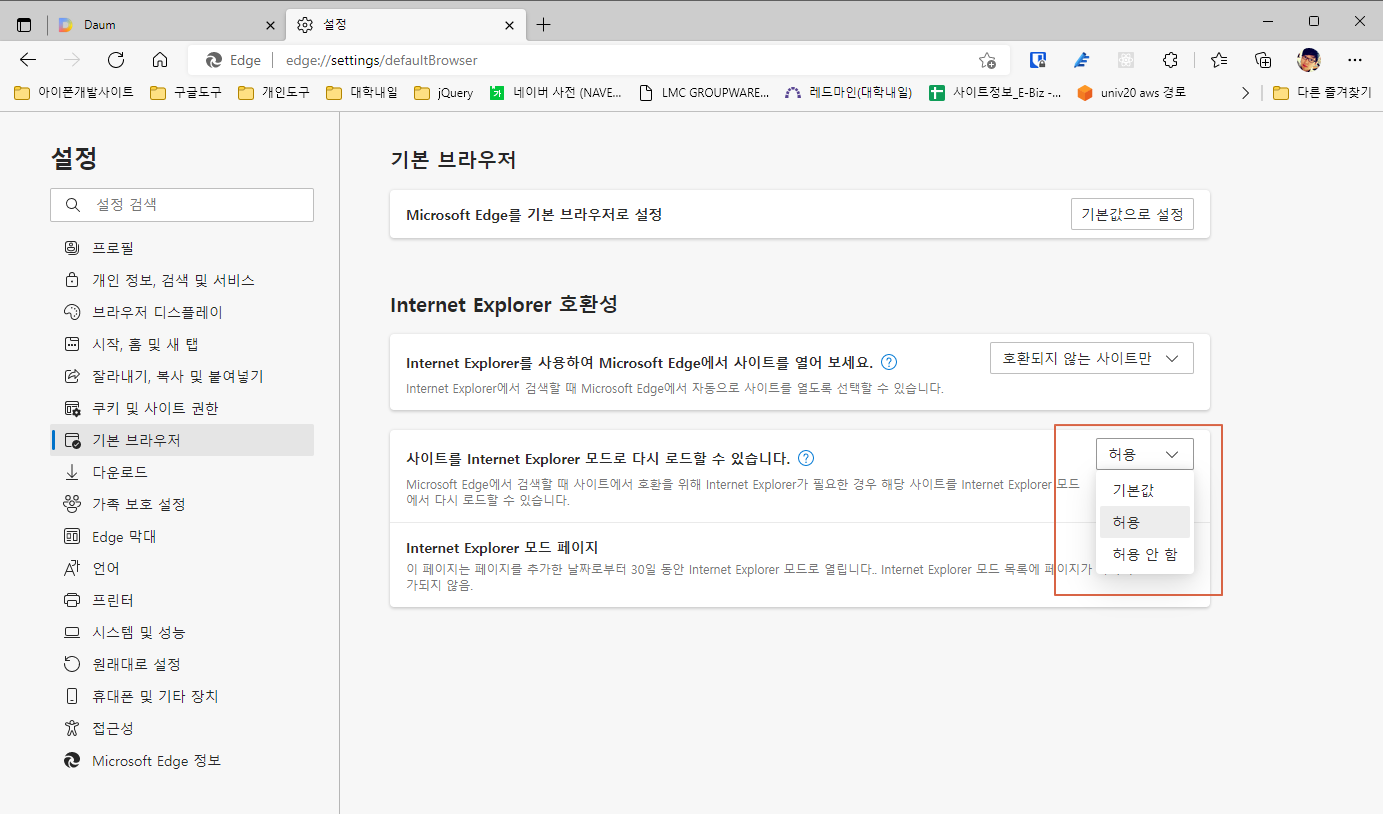 Microsoft Edge 을 열어서 주소 입력란에 edge://settings/defaultBrowser 입력하시면 "사이트를 Internet Explorer 모드로 다시 로드할 수 있습니다." 의 기본값을 "허용" 으로 선택하시면 됩니다. 이 기능은 오는 2029년까지 지원된다고 하네요.