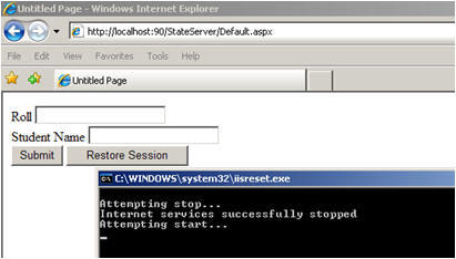 InProc의 경우 이미 세션 데이터가 손실되었지만 StateServer의 경우 Restore Session 버튼을 클릭하면 StateServer 데이터가 IIS에 의존하지 않기 때문에 원래 데이터를 얻을 수 있습니다. 즉, 따로 보관하고 있습니다.