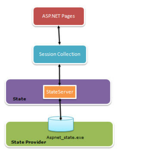 이를 Out-Proc 세션 모드라고도 합니다. StateServer는 IIS와 독립적이며 별도의 서버에서도 실행할 수 있는 독립 실행형 Windows 서비스를 사용합니다. 이 세션 상태는 전적으로 aspnet_state.exe에서 관리합니다. 이 서버는 동일한 시스템에서 실행될 수 있지만 웹 애플리케이션이 실행되는 기본 애플리케이션 도메인 외부에 있습니다. 즉, ASP.NET 프로세스를 다시 시작하면 세션 데이터가 계속 유지됩니다. 이 접근 방식은 관련된 직렬화 및 역직렬화(serialization and de-serialization) 의 오버헤드로 인해 몇 가지 단점이 있으며 사용자가 세션 데이터를 검색할 때마다 응용 프로그램이 다른 프로세스를 참조해야 하기 때문에 데이터 액세스 비용도 증가합니다. (오버헤드 및 비용 증가)