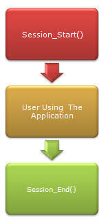 ASP.NET 의 Session 이벤트에는 두 가지 타입이 있습니다. 여기에는 Session_Start() 그리고 Session_End() 가 존재합니다. 이는 오직 Session_End() 이벤트를 제공하는 유일한 모드는 'InProc Mode session' 뿐입니다. 만약 session 이 timeout 시점이 넘게 되면 Session_End() 를 호출하게 됩니다. InProc Session State 에 대한 일반적인 flow 는 아래와 같습니다.