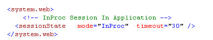 그래서 InProc 세션 모드는 Application Domain 에서 memory 객체에 session 데이터를 저장합니다. 이는 application pool 에서 worker process 에 의해 핸들링 됩니다. 그래서 만약에 server 가 재시작하게 되면, session 데이터를 잃어 버리게 될것입니다. 만약에 클라이언트가 데이터를 요청하면, state provider 가 in-memory 에서 데이터를 읽고 이를 클라이언트에 반환해 줍니다. web.config 에서 session mode 를 설정하며, 여기에 Timeout 을 설정할 수 있습니다.