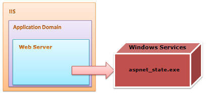 StateServer Session mode 는 out-Proc 라고 불리우며, stand-alone 윈도우서비스를 사용합니다. 이는 iis 의 독립적이며, 분리된 서버에서 운영할 수 있습니다. 이 session state 는 전체적으로 aspnet_state.exe 파일에 의해 관리됩니다.