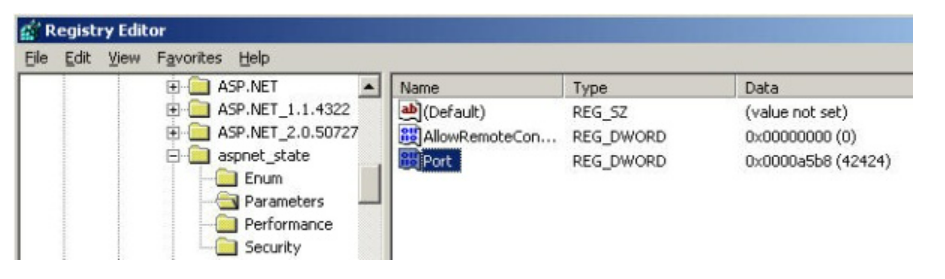 명령 프롬프트에서 "net start aspnet_state"를 입력하기만 하면 됩니다. 기본적으로 이 서비스는 TCP 포트 42424를 수신하지만 아래 그림과 같이 레지스트리 편집기에서 포트를 변경할 수 있습니다.