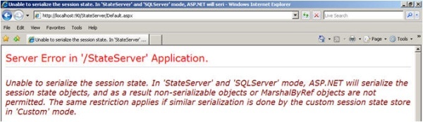 웹 서버를 다시 시작할 때 불필요한 세션 데이터 손실을 방지하기 위해 StateServer 세션 모드를 사용합니다. StateServer는 aspnet_state.exe 프로세스에 의해 Windows 서비스로 유지됩니다. 이 프로세스는 모든 세션 데이터를 유지합니다. 그러나 StateServer 세션 모드에 데이터를 저장하기 전에 데이터를 직렬화해야 합니다.