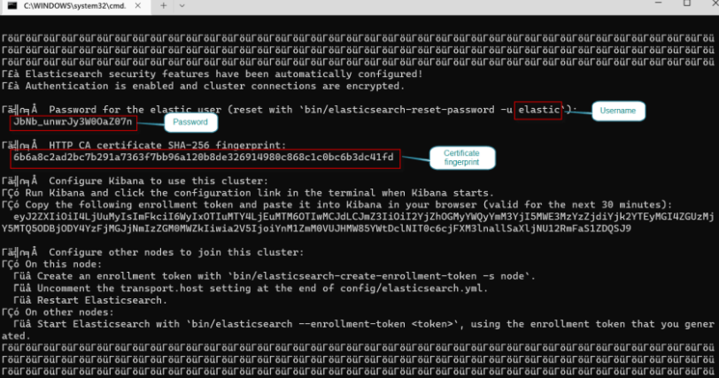 이 코드에서 AddElasticSearch 메소드에서 기본 옵션이 구성된 것을 확인할 수 있습니다. Elasticsearch 인스턴스 설정 중에 생성된 사용자 이름, 비밀번호 및 certificate footprint 이 여기에서 사용됩니다.