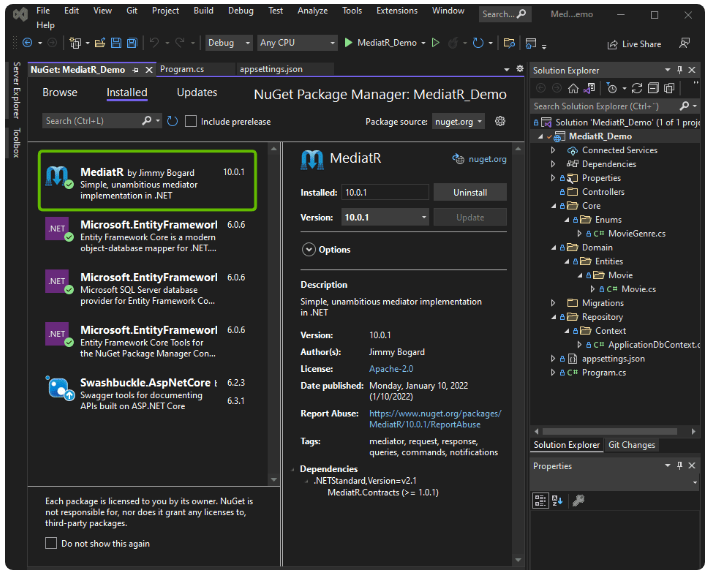 GitHub - Christian-Schou/CQRS-and-MediatR-demo: A demo on how to implement CQRS in an ASP.NET Core Web API using MediatR