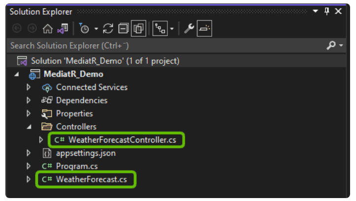 API 는 템플릿을 사용하여 만들어지기 때문에 일부 초기 정리 작업을 수행해야 합니다. 가장 먼저 해야 할 일은 프로젝트에서 Weather Forecast 클래스와 컨트롤러를 삭제하는 것입니다.