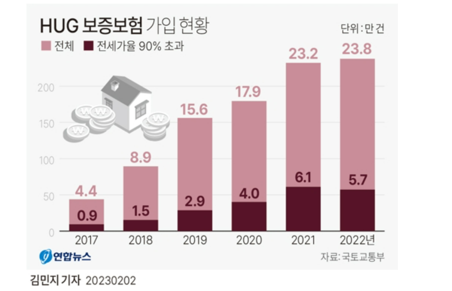 보증금이 주택 가격을 초과하는 이른바 ‘깡통주택’에 대한 전세계약을 사전에 차단해 임차인을 보호하려는 취지다. 2023년 2월 6일 주택도시보증공사(HUG)에 따르면, 이날부터 접수하는 전세금안심대출보증 신청 대상 주택의 부채비율이 90%를 초과할 경우 보증한도가 기존 80%(신혼부부·청년은 최대 90%까지)에서 60%로 20%포인트 낮아진다.부채비율이 90% 이하인 주택은 원래대로 보증금의 80% 이내까지 보증 가능하다. (현재 80% -> 추후 60% 보증만 함)