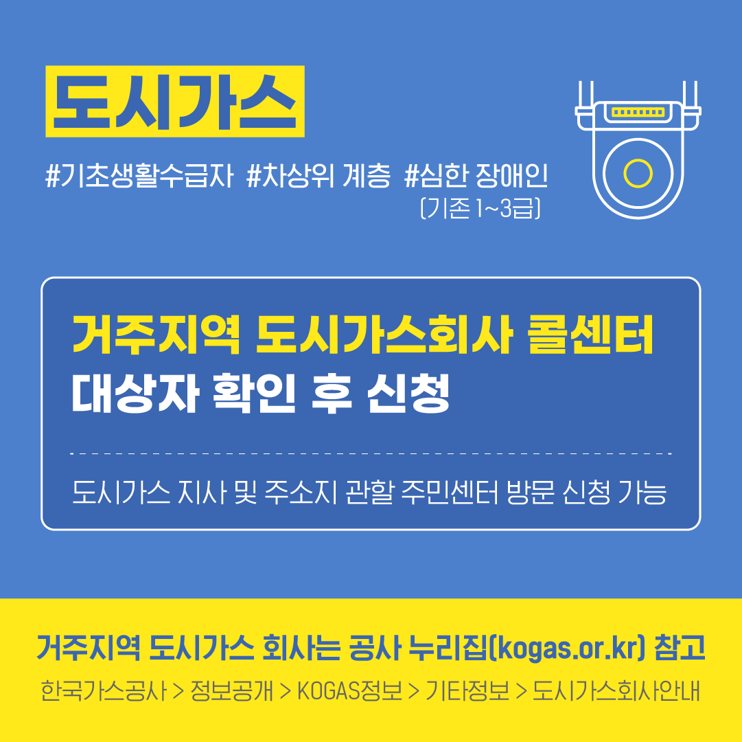 도시가스 요금 감면 대상 사회 취약계층 발굴 및 신청 안내