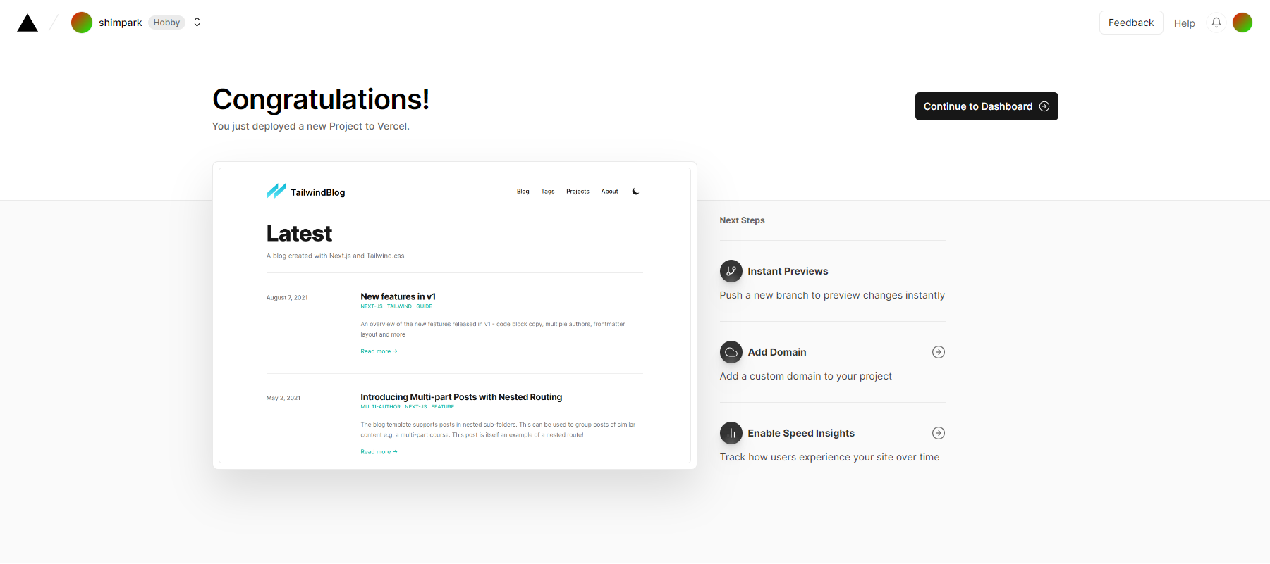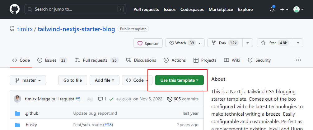 Next.js, Tailwind CSS 블로그 스타터 템플릿입니다. 아마도 가장 기능이 풍부한 Next.js 마크다운 블로그 템플릿일 것입니다. 최신 기술로 구성되어 있어 기술 글을 쉽게 작성할 수 있습니다. 쉽게 구성하고 사용자 정의할 수 있습니다. 이는 기존 Jekyll 그리고 Hugo 를 활용한 개인 블로그를 대체할 수 있습니다. 공식 사이트 (https://github.com/timlrx/tailwind-nextjs-starter-blog)