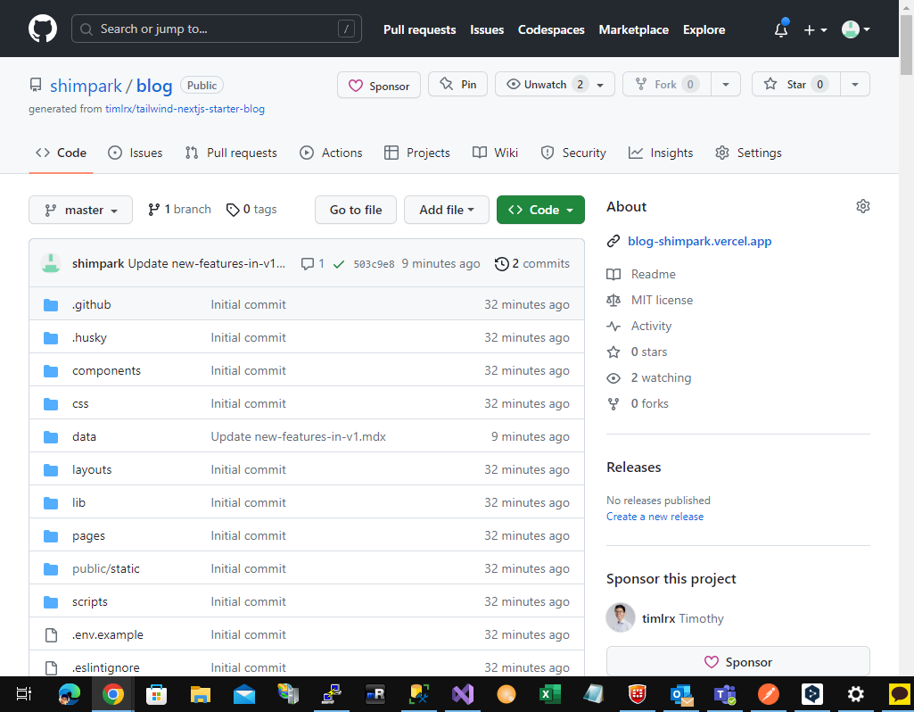 이제 복제된 나의 repository 에 TailwindBlog 소스를 가져온 사항입니다.