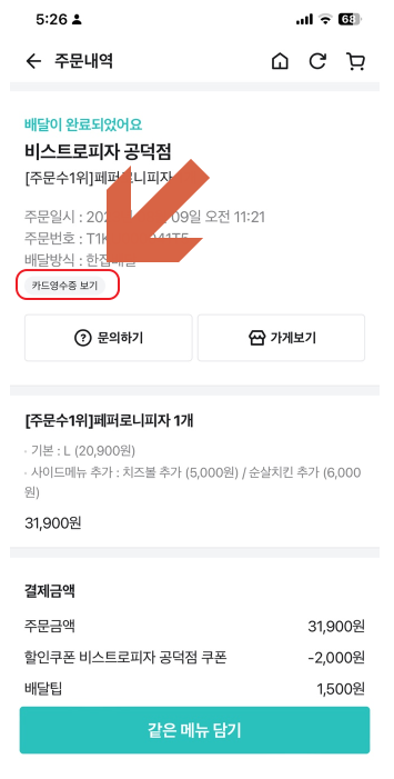"카드영수증 보기" 라는 작은 버튼이 보입니다. 선택합니다.