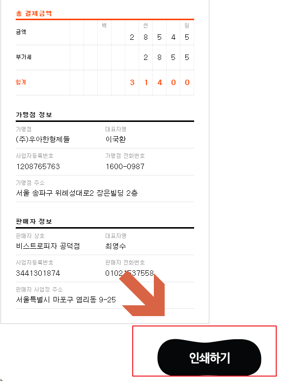 회사에서 배달의민족을 통해 배달 음식을 먹었는데요. 전자결재에 영수증 첨부를 하기 위해서 아래와 같이 PDF 영수증을 얻기 위해 진행했습니다.