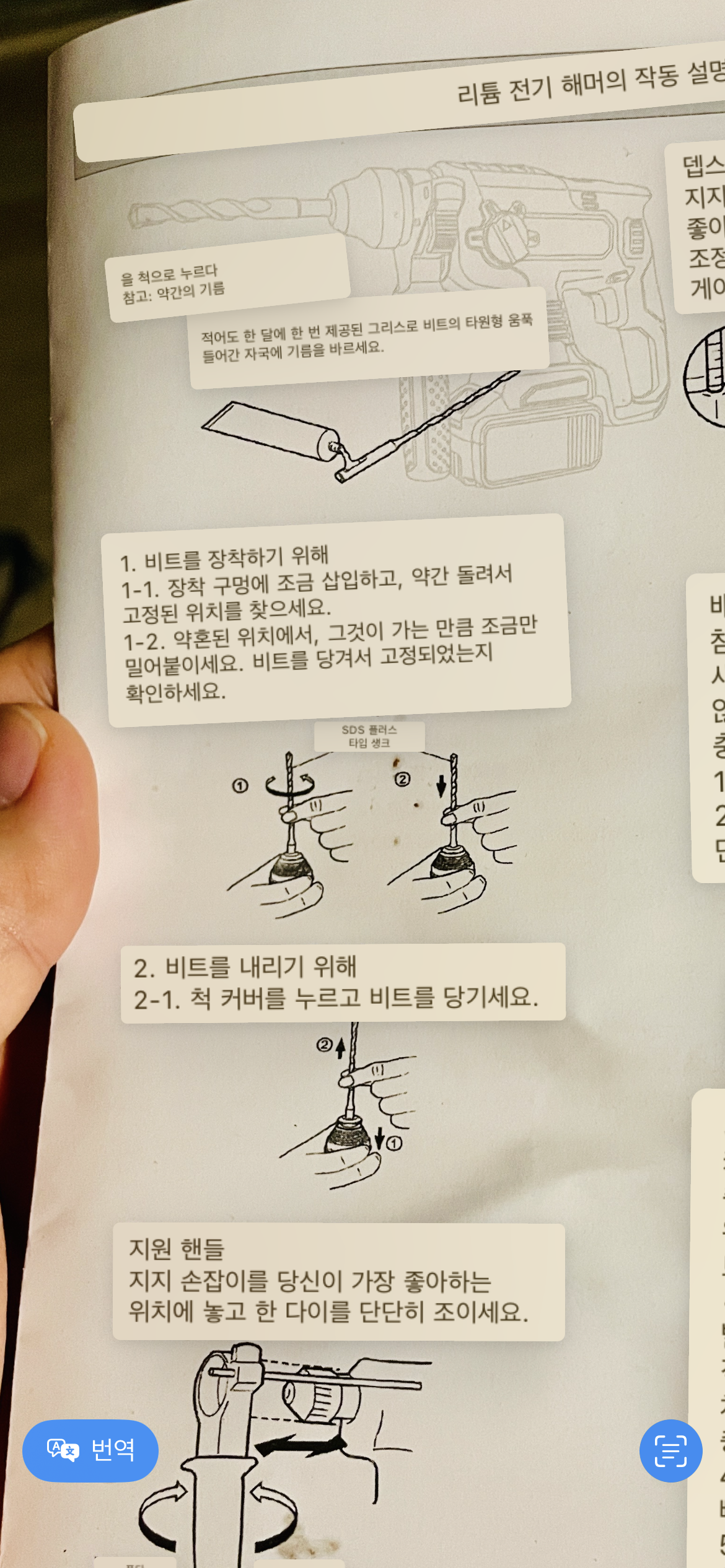 1. 척 커버를 누르고 비트를 당겨서 뺍니다.