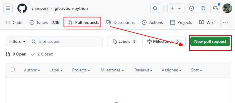 8. github 의 pull requests 에 가서 push 한 내역을 요청해야 한다.