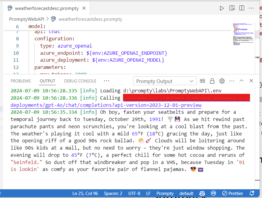 .NET WebAPI 애플리케이션에서 Prompty를 사용하는 실제 예를 살펴보겠습니다.