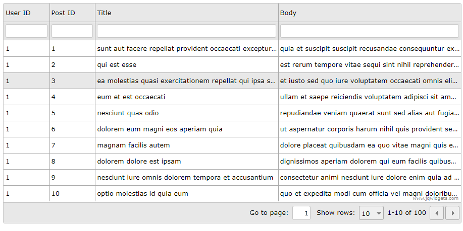 jqxGrid 와 JSONPlaceholder - 서버사이드 페이징/필터링