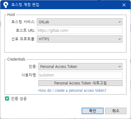 이제 Sourcetree에서 GitLab 계정을 연결하는 방법입니다.