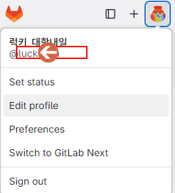 - Username(사용자 이름): GitLab에 가입한 사용자 이름을 입력하세요. (아래 그림에서 @다음의 영문이 사용자 이름)