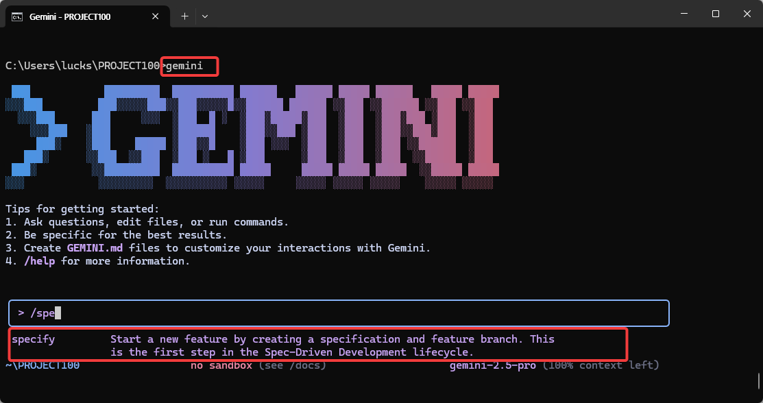 이 단계는 **"무엇(What)"**을 만들 것인지 정의하는 과정입니다. AI 에이전트에게 /specify 명령어를 사용하여 요구사항을 상세하게 설명합니다. 이 단계에서는 기술 스택에 대한 언급을 피하는 것이 중요합니다.